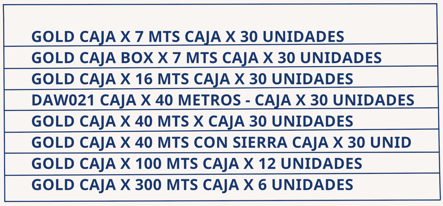 GOLD CAIA X 100 MTS CAIA X 12 UNIDADES GOLD CAJA X 300 MTS CAIA X 6 UNIDADES