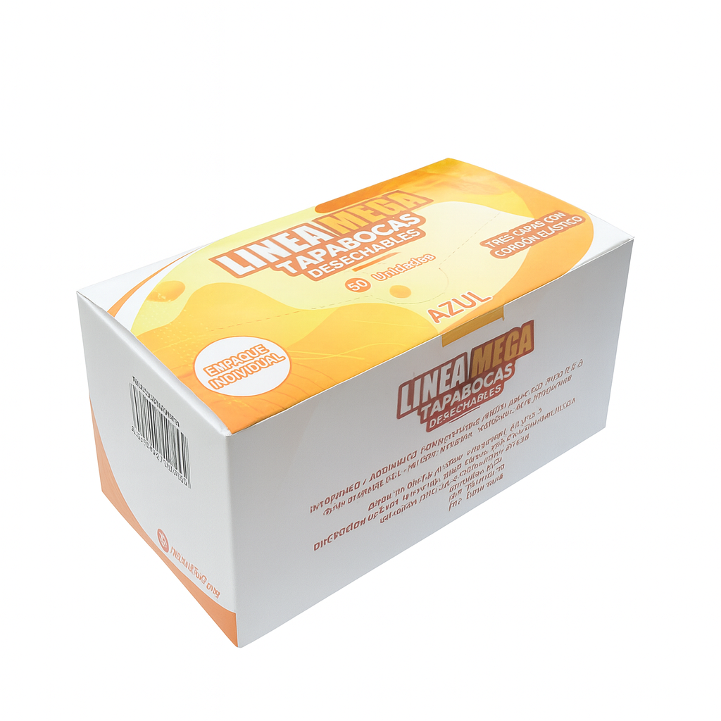 Tapabocas azul Empaque individual x 50 unidades caja x 40
